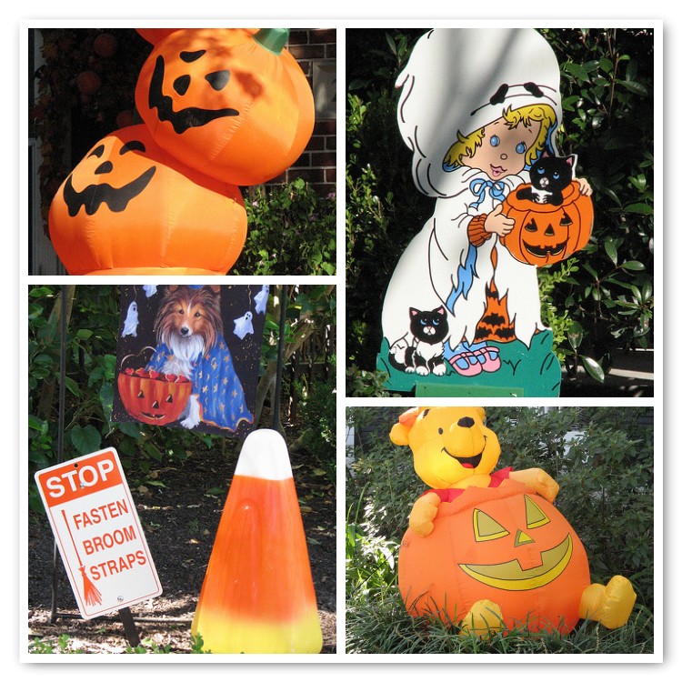 Your Mosaic Monday photos are fabulous. What a great idea to go walking around the neighborhood taking photos of everyone's decorations. You know, it's sad, our neighborhood doesn't decorate too much for Halloween or Fall. Christmas is another story, but this time of year, it's pretty limited. Oh well, I will have to pick someone else's neighborhood to go walking around. ;-)
