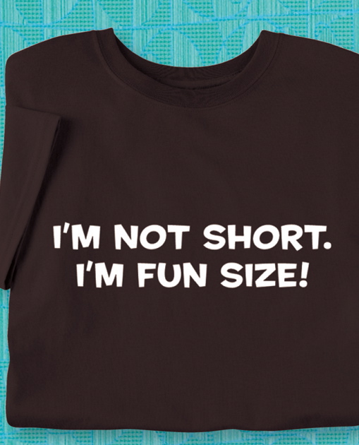 I've shrunk enough that now I'm 1/4" under 5 feet! My choice of shirt would be "I'm not overweight, just undertall".