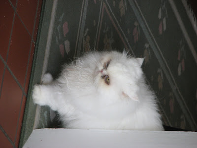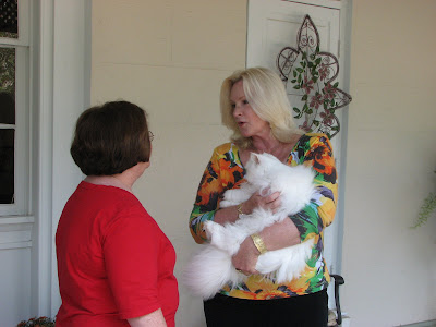 This is the owner, Ginger, with one of her kitties - Snowflake.